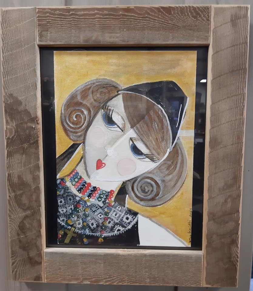 Nel laboratorio artigianale di decorazione di Sonia Biagiotti, vecchie ante, porte, finestre, mobili, assi di legno, lenzuola ricamate, sacchi di iuta, carte,